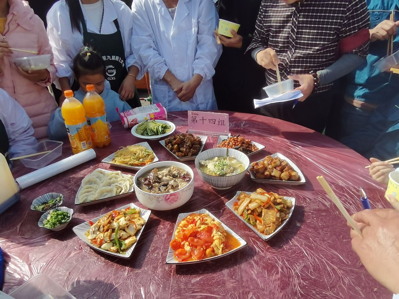 本次大赛要求在规定时间内完成10道菜(五荤五素)和200只饺子。上午八点,各大厨早早赶到比赛现场,随着主持人一声令下,厨艺大赛正式开始。大厨们大显身手,各显神通,个个刀工娴熟,技艺精湛,充分展示自己的厨艺技术,随着时间的逐步推进,一道道色泽鲜艳、荤素搭配的菜肴被端上桌席,进入大众和评委的眼帘。他们独特的创意、精致的造型、娴熟的技艺,赢得了评委和员工们的连连称赞。
