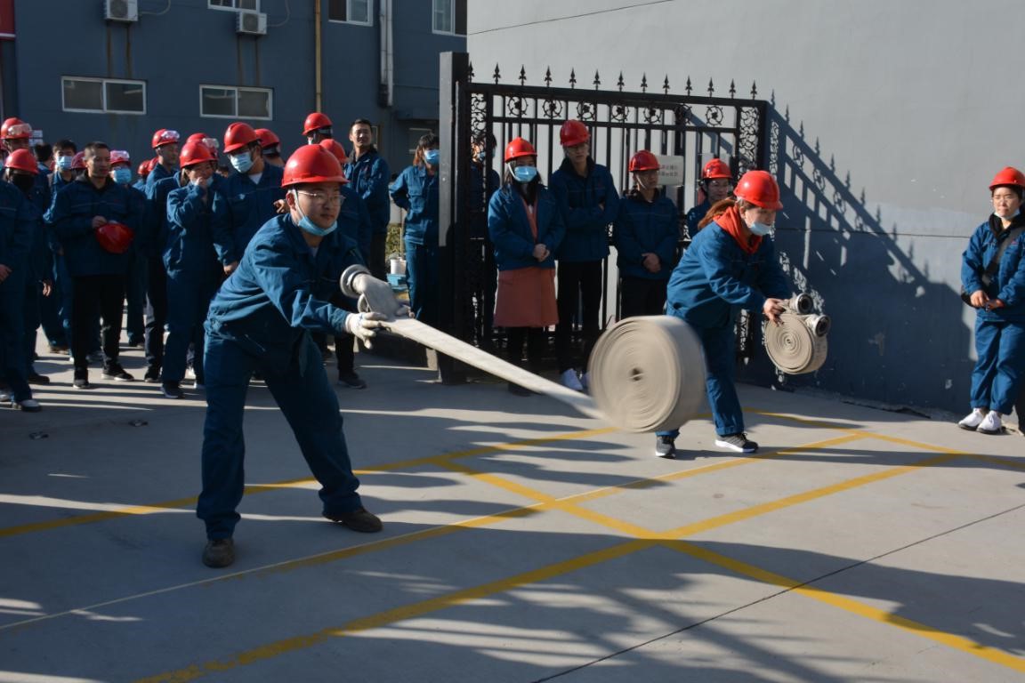 山东m88官网药业消防运动会于2020年11月9日举行,共有13支队伍、188人参赛。相比往年传统项目,今年加大难度,增加趣味性。比赛共设有:水带打靶、灭火接力、火速救援、出水打靶和消防理论知识考试五个项目。